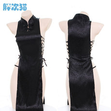 太棒了,绑带镂空旗袍古典睡裙两侧绑带高开叉很性感睡衣连衣裙