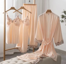 冰丝绸睡衣女款2024新款春秋高级感睡裙夏天性感蕾丝吊带睡袍套装