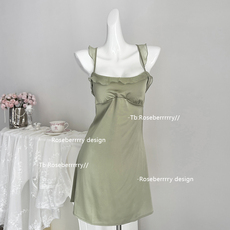 RooMance汝曼司 原创法式褶皱吊带睡裙女款春仿真丝开叉性感睡衣