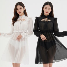 三福女春季蕾丝网纱睡袍 纯欲网纱性感风睡裙宽松家居服513233