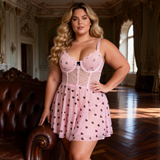 2025新款性感睡衣情趣内衣大码蕾丝批发胖mm吊带睡裙聚拢带胸垫