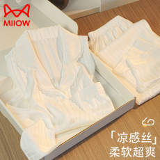 猫人冰丝睡衣女2026春秋新款自带胸垫宽松凉感仿真丝绸外穿家居服