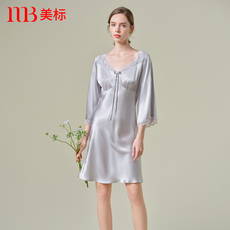 维多控睡衣女短袖中长款性感真丝睡裙简约蚕丝宽松衬衫家居服女夏