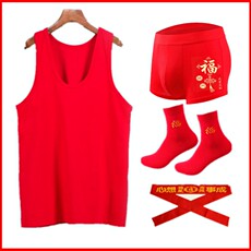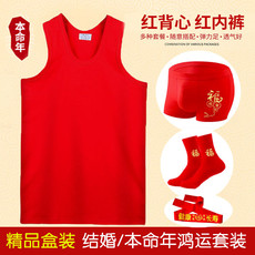 男背心大红色本命年龙年鸿运打底属蛇汗衫结婚礼物内裤袜子套装男