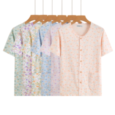 女士中老年人纯棉短袖背心开身系扣宽松加肥大码妈妈对襟空调汗衫