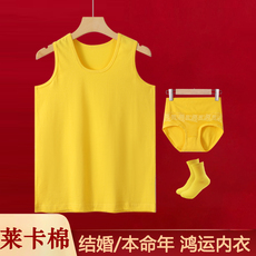 本命年黄色背心男士金黄色莱卡棉内裤内衣套装结婚闰月年新年打底