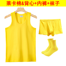 金黄色背心男莱卡棉内衣结婚正黄鸿运套装贴身弹力打底黄内裤袜子