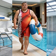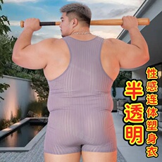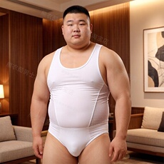 男子健身服摔跤服连体平角内裤塑身连体背心大码男士连体裤运动熊