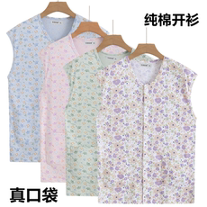 纯棉碎花背心带衣兜女夏季开衫宽松中老年居家坎袖汗衫大码