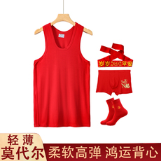 本命年男士红背心莫代尔薄款红色内衣内裤结婚套装修身鸿运打底衫