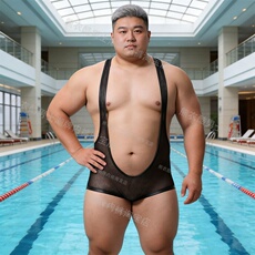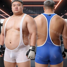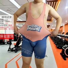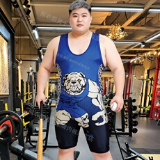 男款运动摔跤服胖子大码4XL健身紧身连体裤平角短裤一体式背心熊0