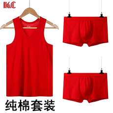 红豆背心男士大红色本命年龙年打底棉汗衫结婚礼物内裤袜子套装
