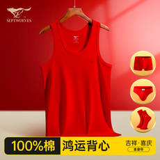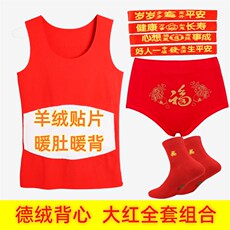本命年大红色女士背心纯棉红内衣红内裤红袜子结婚红色大码套装女
