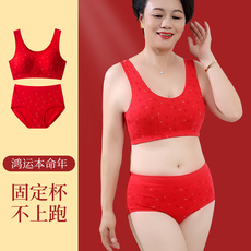 本命年红色内衣内裤套装女妈妈文胸中老人背心式大码胸罩龙年礼物