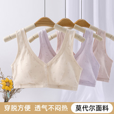 薄款莫代尔妈妈前扣内衣女无痕固定一体杯透气内层背心中老年文胸