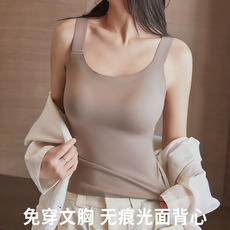 大码无痕光面背心带胸垫免穿文胸女士大胸可外穿内衣贴身打底上衣