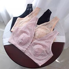 中老年文胸夏季薄款无钢圈妈妈无海绵内衣女背心后扣蕾丝胸罩521