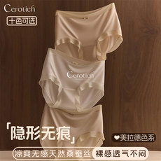 铂金蚕丝内裤莫代尔内裤女大码高腰三角裤抗菌透气桑蚕丝裆短裤头