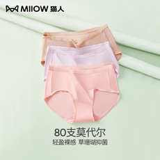 猫人无痕内裤女中腰冰丝抗菌女士一片莫代尔透气提臀高腰短裤薄款