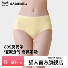猫人内裤女莫代尔桑蚕丝抗菌裆无痕不夹臀高弹顺滑三角裤中腰短裤