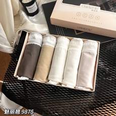 魅丽翘精品5条盒装蕾丝莫代尔棉抗菌纯棉裆薄款中腰女三角内裤头