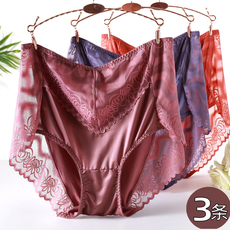 莫代尔内裤女士冰丝无痕中腰蕾丝裸感大码少女艾草纯棉档性感迷人