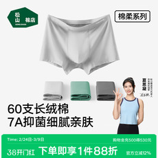 松山棉店棉柔1号男士平角内裤60支长绒棉7A抑菌弹力不夹臀内裤男
