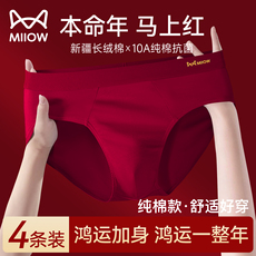 猫人男士三角内裤本命年100%全棉抗菌裆2026马年红色男款大码短裤