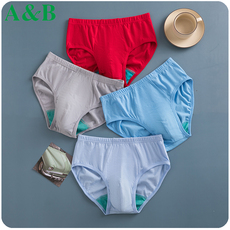 4条AB内裤男纯棉大码高腰全棉中老年宽松抗菌男士红色三角裤0922