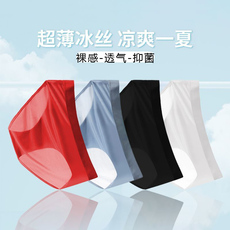 2条装男士三角内裤低腰一片式无痕冰丝薄款凉感纯色透气底裤包邮
