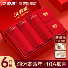 北极绒红色内裤男士纯棉平角短裤2026新款本命年结婚礼物四角裤头