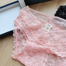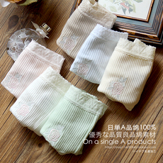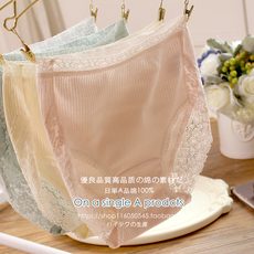 日单A品 100%纯棉螺纹全棉蕾丝边中高腰三角女内裤 包臀有加大