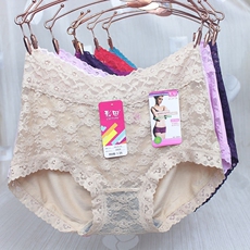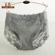 4条盒装日系性感蕾丝女士内裤纯棉中高腰全棉收腹大码胖mm三角裤