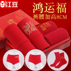 红豆女士高腰大红色本命年结婚中老年加大码纯棉底裆棉质三角内裤