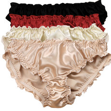 好货真不贵 高档女士真丝内裤荷叶边素绉缎低腰女真丝内裆三角裤