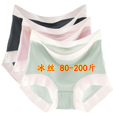 加肥加大码冰丝内裤女胖妹妹200斤无痕高腰小平角裤夏季轻薄蕾丝