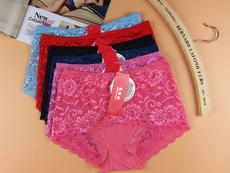特批中腰女士蕾丝花边无痕竹炭纤维 女士内裤 宽边莫代尔透气短裤