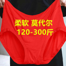 200-300斤加肥加大码莫代尔本命年红色内裤女胖mm高腰中老年妈妈