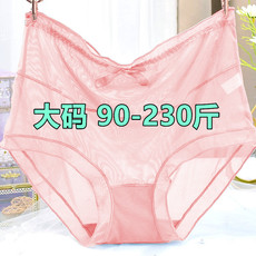 大码胖mm200斤女士性感内裤蕾丝透明冰丝网纱高腰粉色三角裤头夏