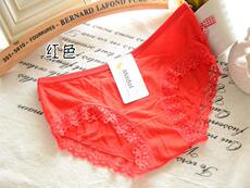 结婚红色本命年春夏中腰性感三角内裤 女 无痕蕾丝 透气防走光