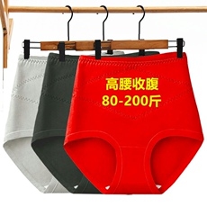 大红色本命年内裤女士纯色棉裆高腰收腹提臀大码200斤结婚三角裤