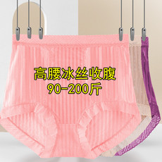 高腰内裤女收腹裤无痕大码冰丝胖mm产后妈妈三角裤200斤超薄夏季