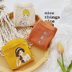 3条装 纯棉格纹中腰三角内裤少女甜美卡通印花条纹大码透气女内裤