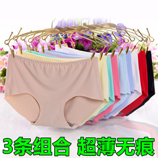 1/4条夏日冰凉无痕内裤女简约中腰冰丝一片式弹力大码三角裤丰臂