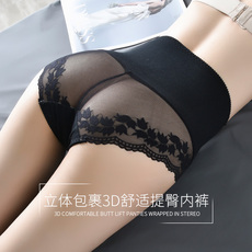 性感内裤女中腰纯棉裆蕾丝透明诱惑收腹提臀无痕大码女士三角裤夏