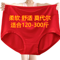 300斤特加超大码加肥高腰莫代尔内裤女胖mm中老年妈妈红色本命年