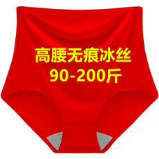 高腰冰丝内裤女无痕收腹一片式胖mm200斤加肥大码纯棉裆红色三角