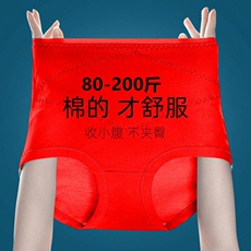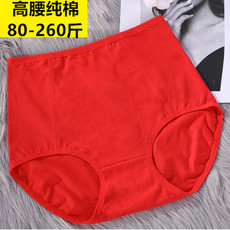 胖妹妹mm内裤纯棉大红色本命年高腰200斤女士平角四角加大码底裤