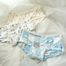 满38包邮日系牛奶丝内裤女少女甜美刺绣中低腰丝滑三角裤学生