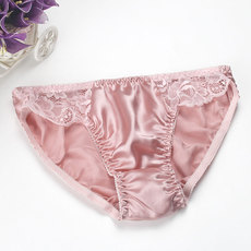 满2件包邮 100%桑蚕丝真丝内裤女丝绸三角裤透气排汗 蕾丝边